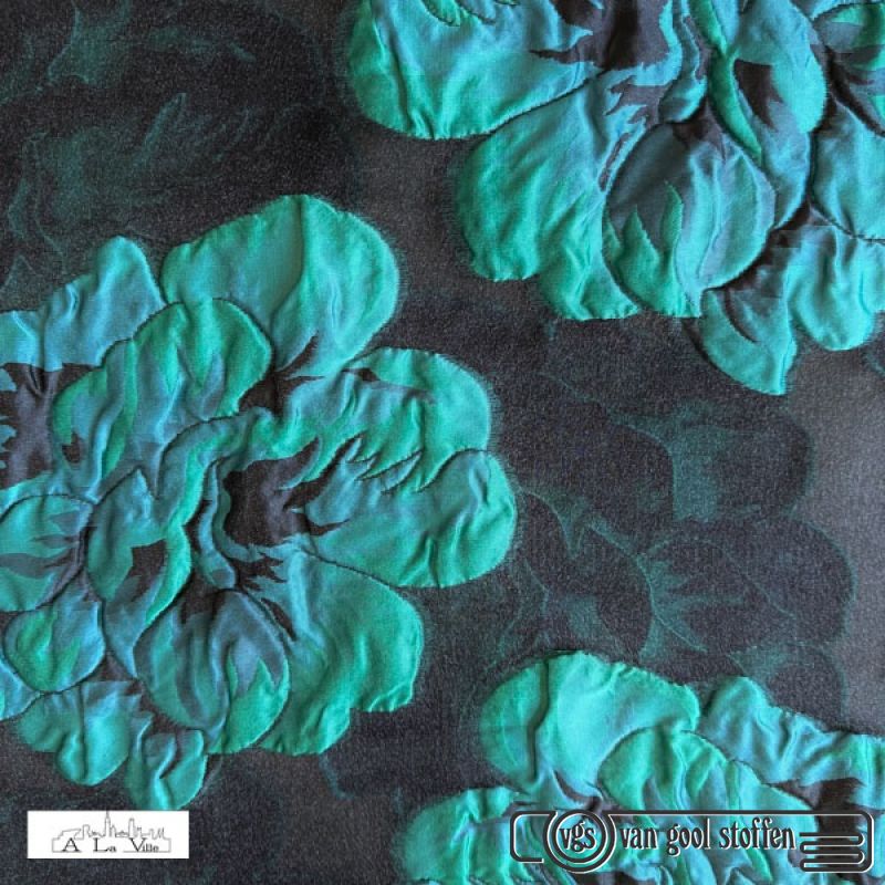 Organza met bloemen zwart fuchsia A la ville / knipmode