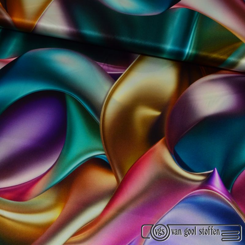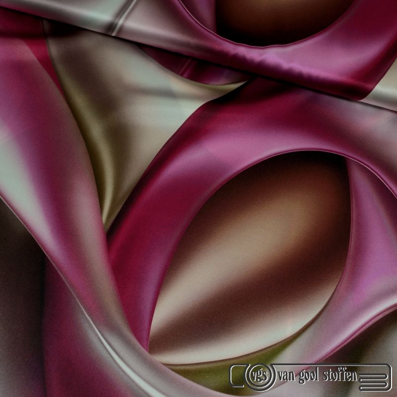 Exclusieve stretch zijde Italiaans design color waving petrol cerise paars