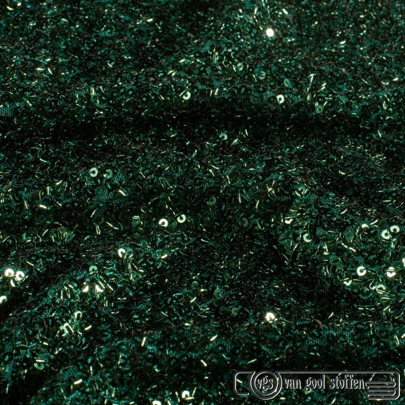 Mesh stof met pailletten en kraaltjes – effen donkergroen kleur 028