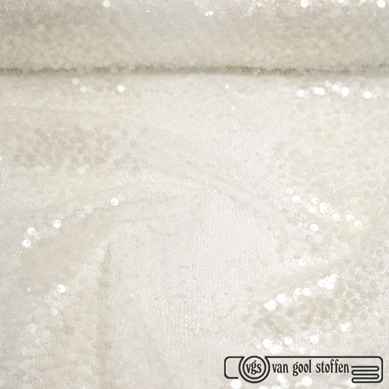 Pailletten bewerkt op zwarte stretch tule barok style patroon