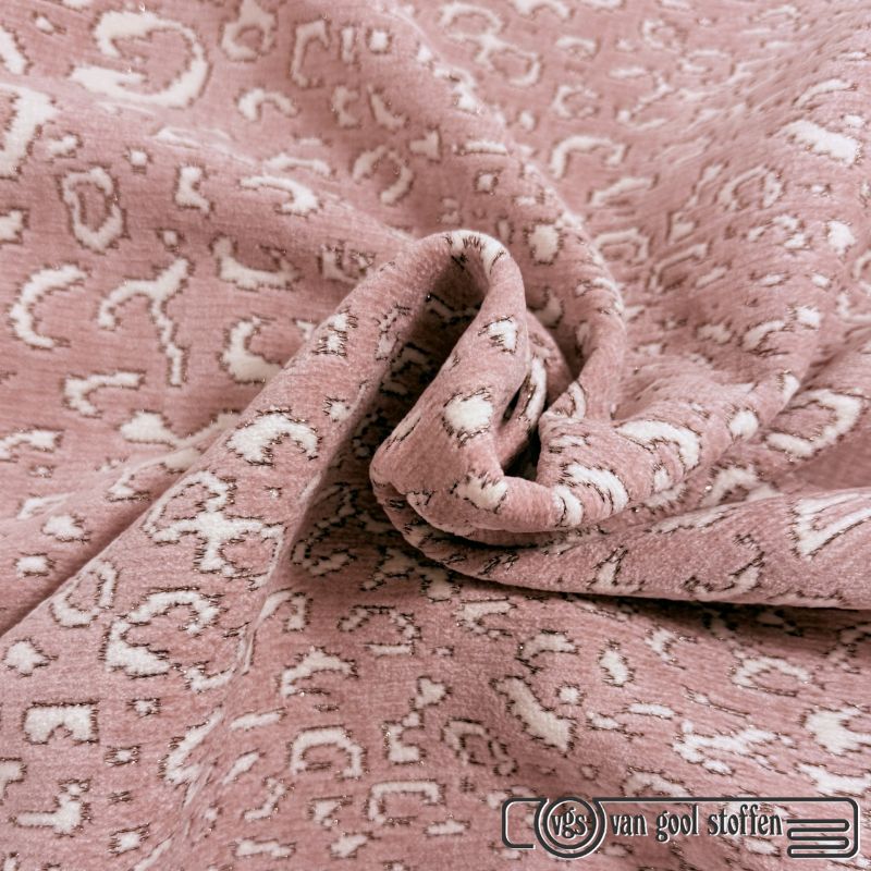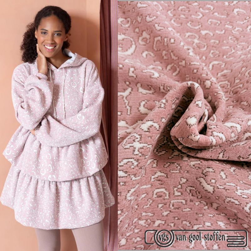 Exclusieve gebreide velours met panterprint oud rose Ala ville Knipmode