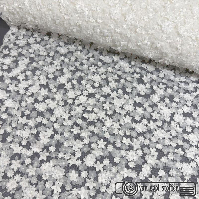 Exclusief Haute Couture 3D Kant – Ivory met Parels 50cm breed