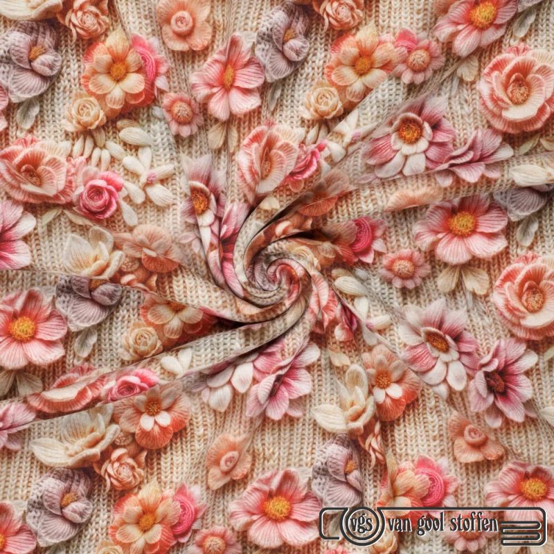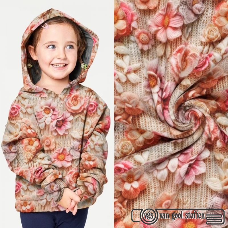 Jogging / alpenfleece digitaal print breisel met bloemen beige rose