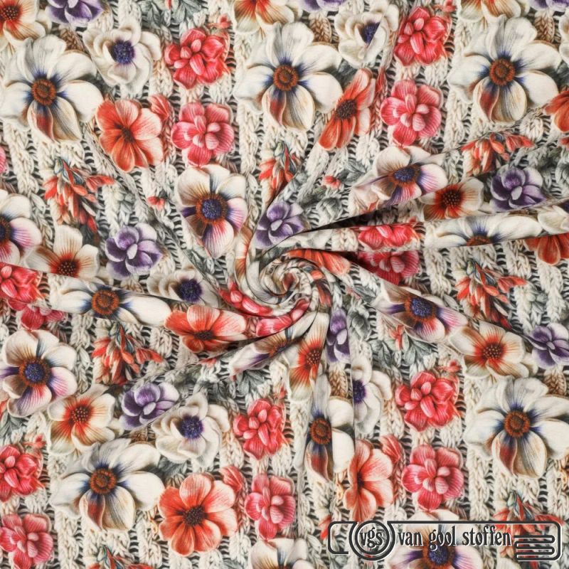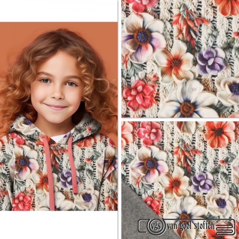 Jogging / alpenfleece digitaal print breisel met bloemen grijs paars