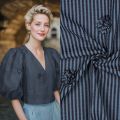 Met een gewicht van 150 g/m² heeft deze stof een mooie balans tussen stevigheid en soepelheid. De ademende en huidvriendelijke eigenschappen van katoen zorgen voor optimaal draagcomfort. Het geborduurde detail geeft een luxe en ambachtelijke uitstraling, ideaal voor zowel casual als meer geklede kledingstukken.
