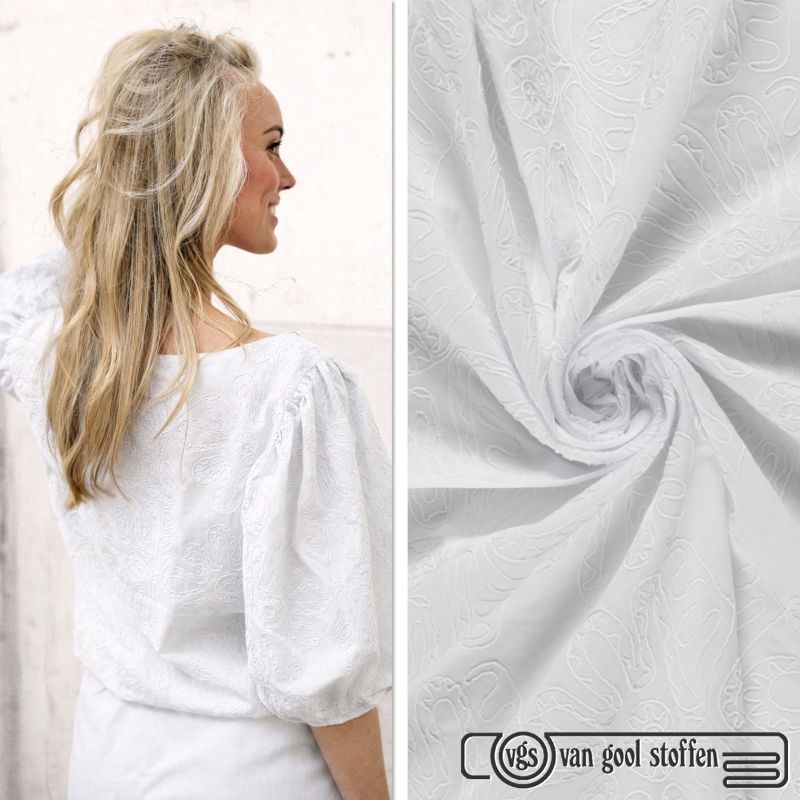Gebruik deze geborduurde katoenen stof voor een elegante blouse, luchtige jurk of trendy top uit het My Image patronenblad. De combinatie van natuurlijke kwaliteit en verfijnde details zorgt voor een tijdloos kledingstuk dat seizoen na seizoen gedragen kan worden.