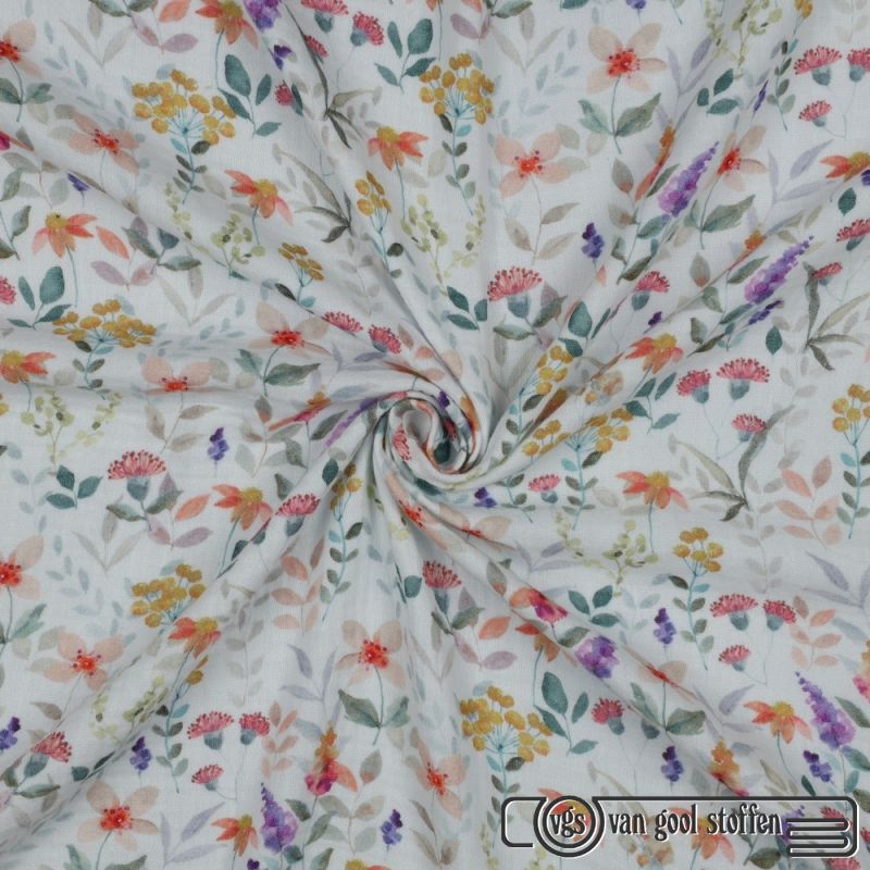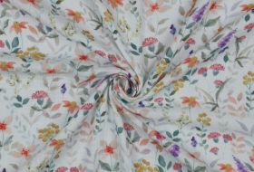 Coupon 125x140 katoen double gauze wit met bloemen geprint