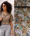 Esclusiva seta italiana 94% 6%ly con stampa digitale. 100 grammi m2 136 cm di larghezza. Design grande, 140 cm è il modello.