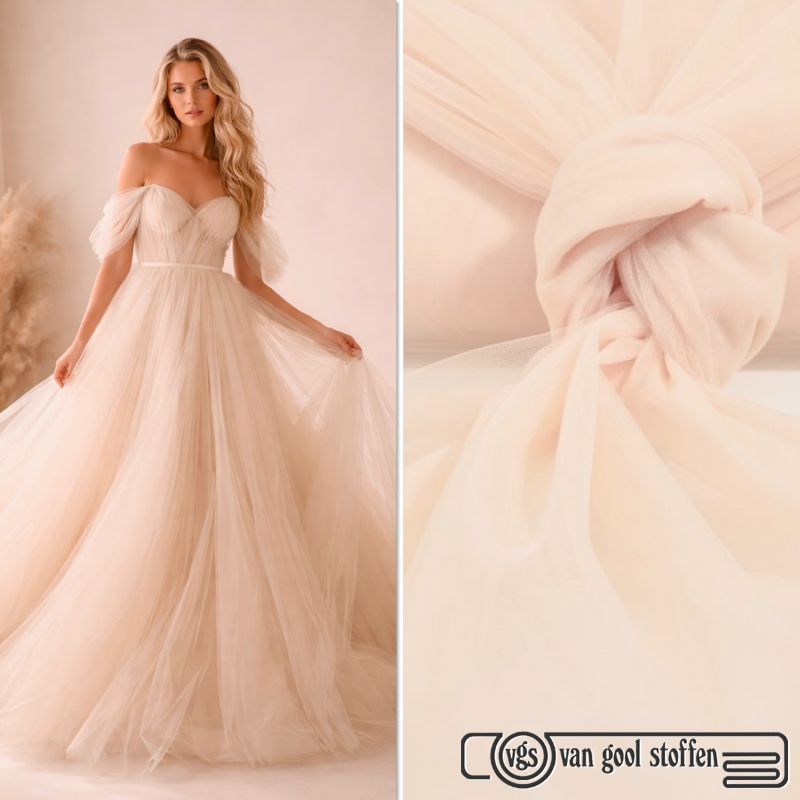 Morbido tulle elasticizzato extra fine. Questo tulle elasticizzato extra morbido è largo 2,70 m e ha un bel drappeggio morbido. Fai attenzione ! questo tulle può essere allungato su un lato, solo in larghezza.