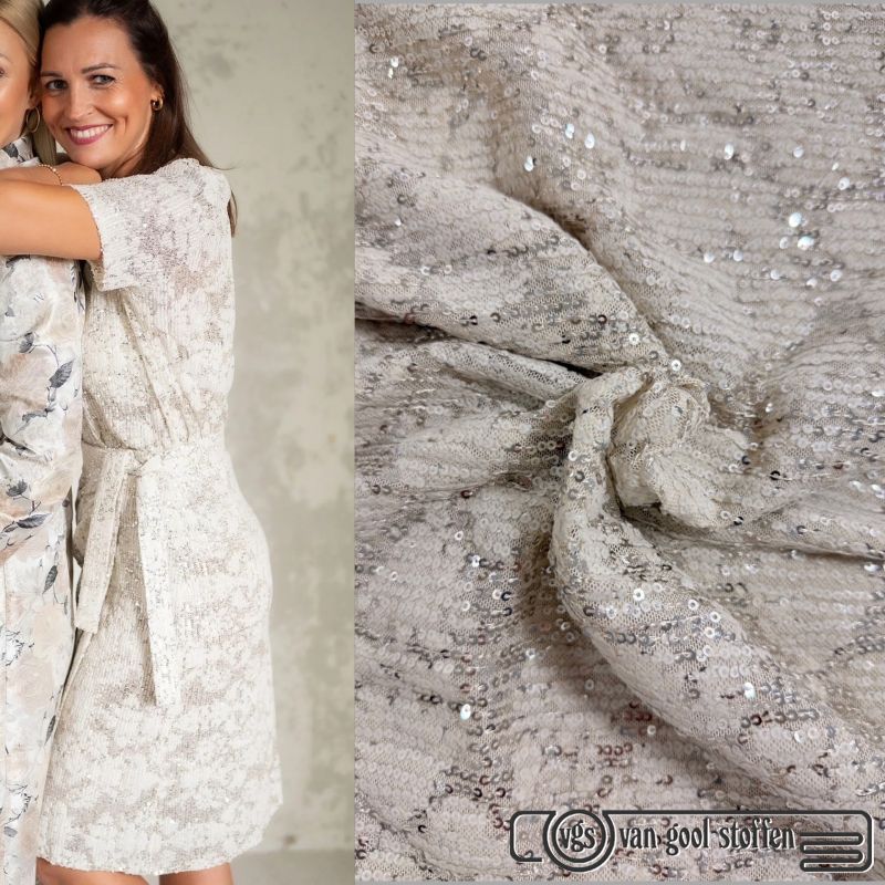 Mesh stof met zilveren pailletten ivory