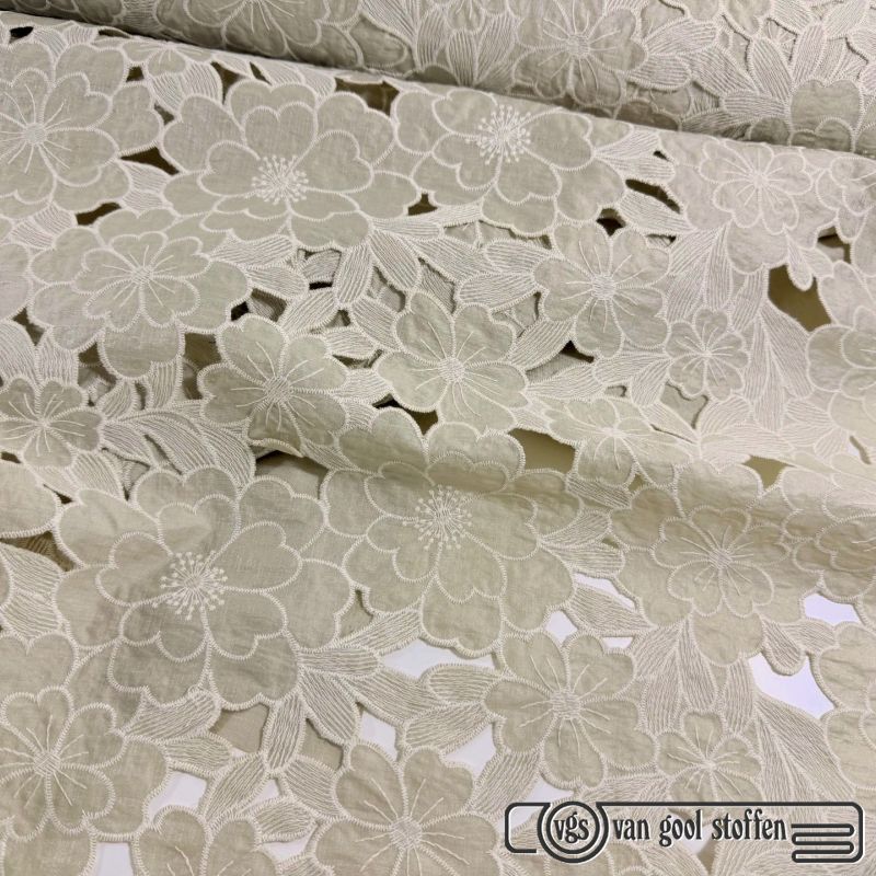 Exclusieve borduursel bloemen print /broderie zand kleur