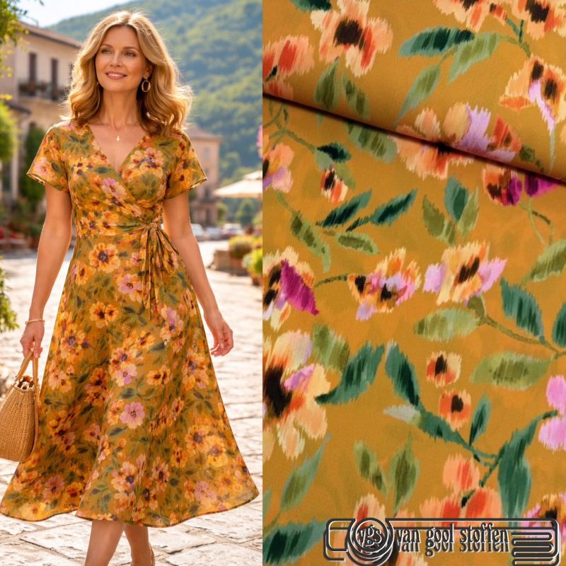 Stretch crepe digitaal printed bloemen kerrie A la ville / bittoun