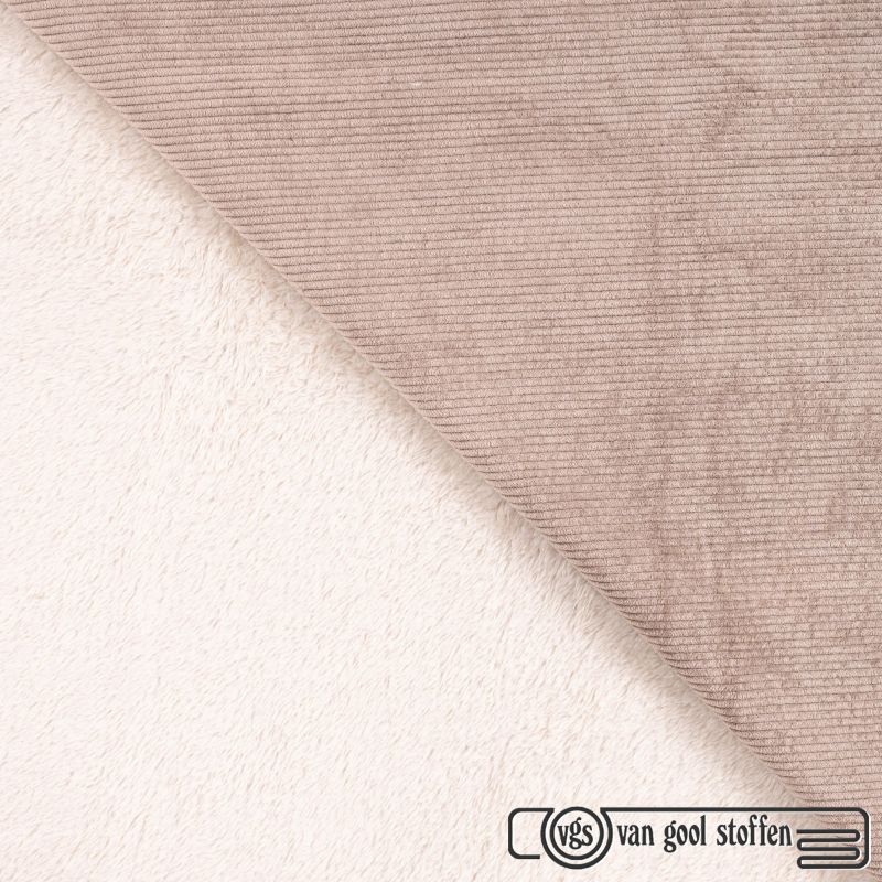 Corduroy /babyrib metbont/ borg dubbel face beige taupe