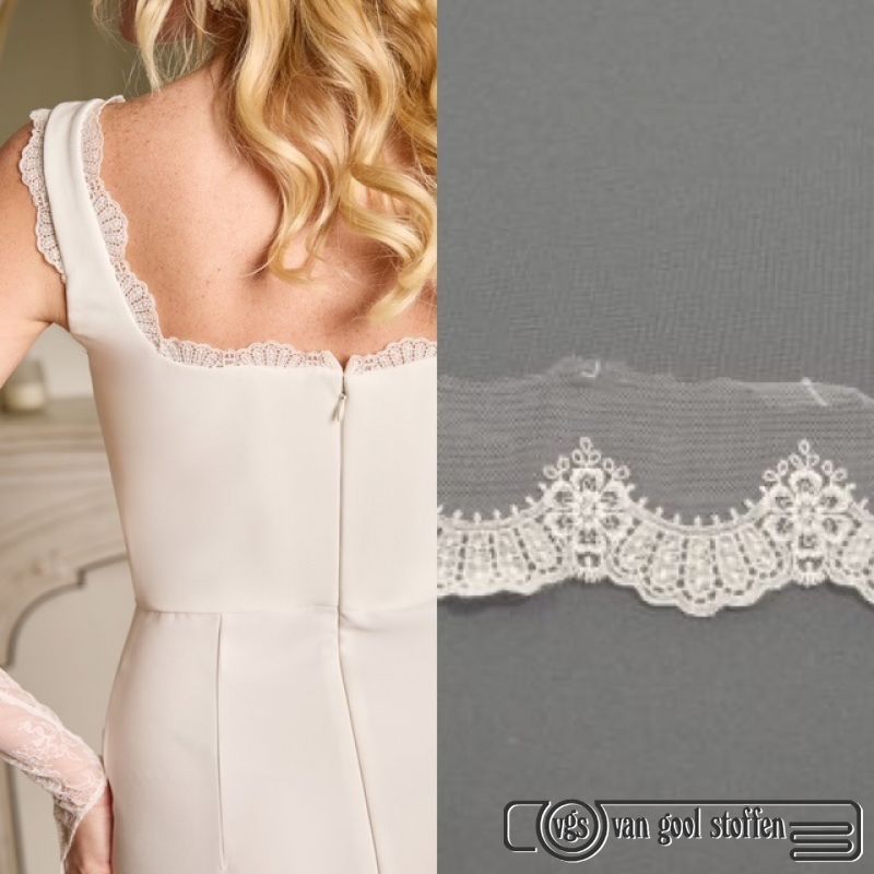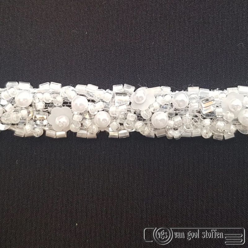 Kanten rand met parels en bloem pailletten 2cm ivory