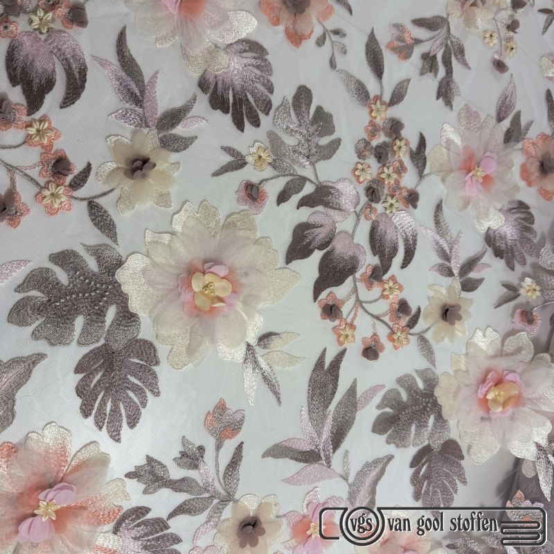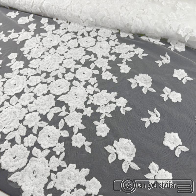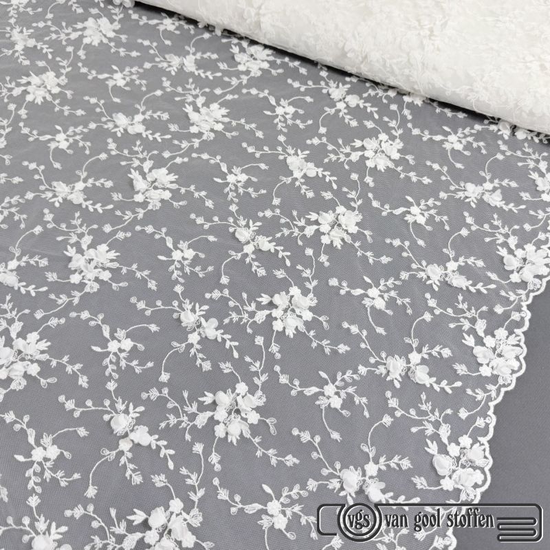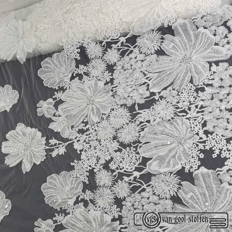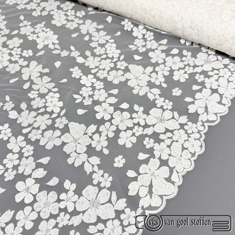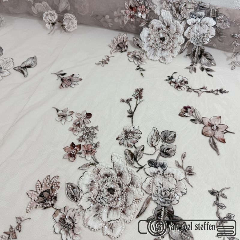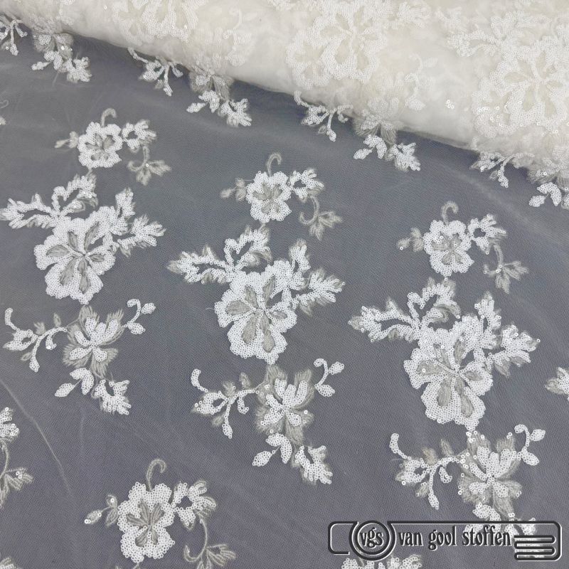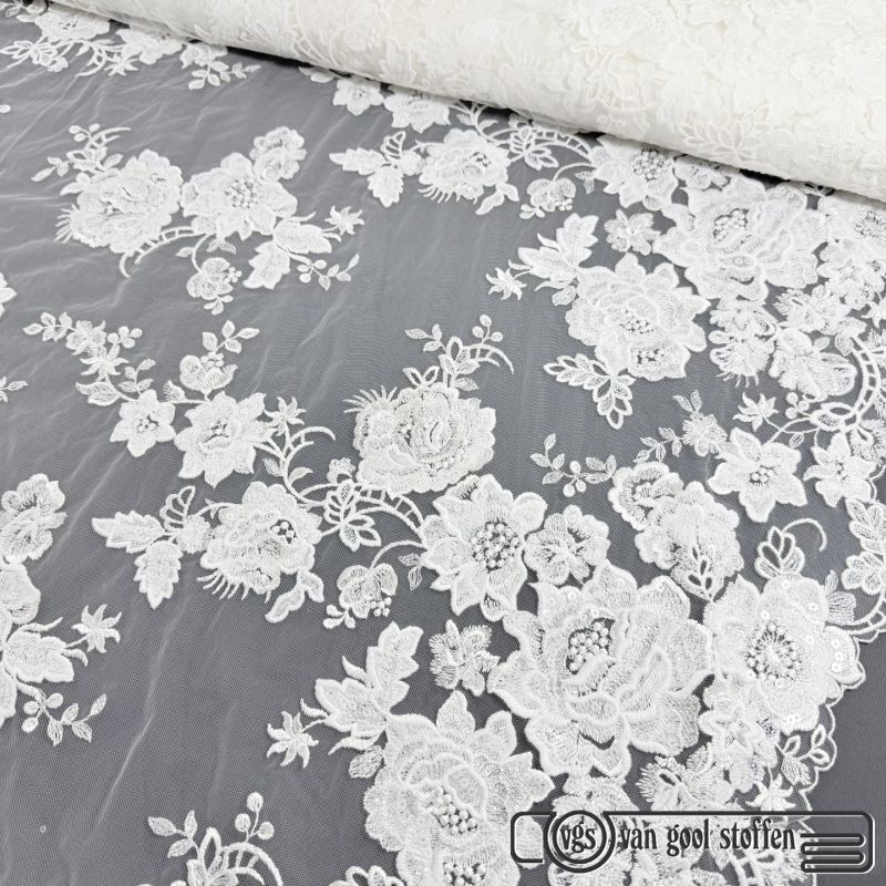 Tule met parels ivory