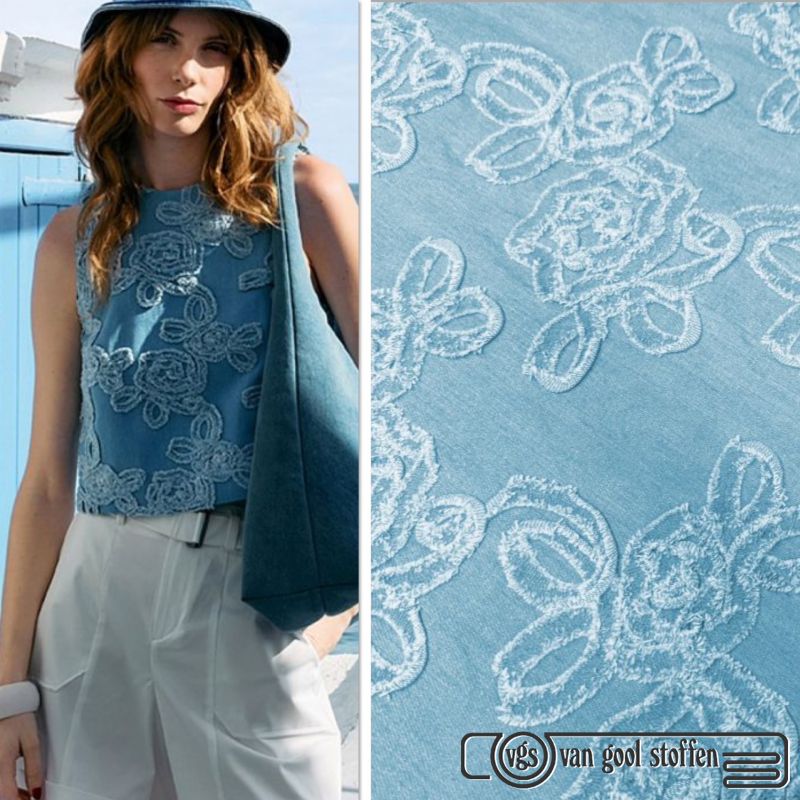 Doorgestikt gewatteerd streep blauw melange dubbelzijdig #burda