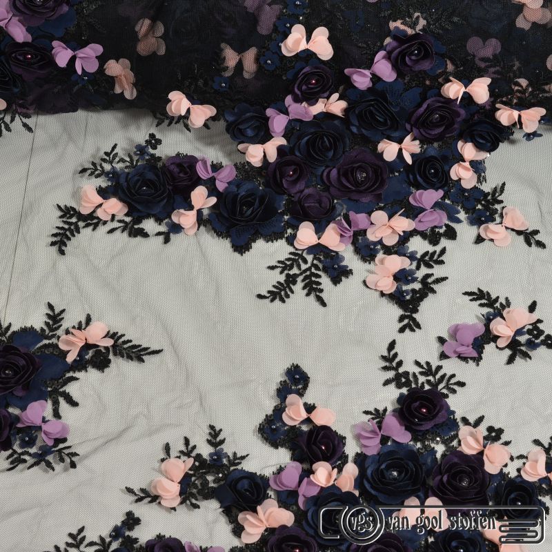 Haute couture 3D kant zwart paars donkerblauw