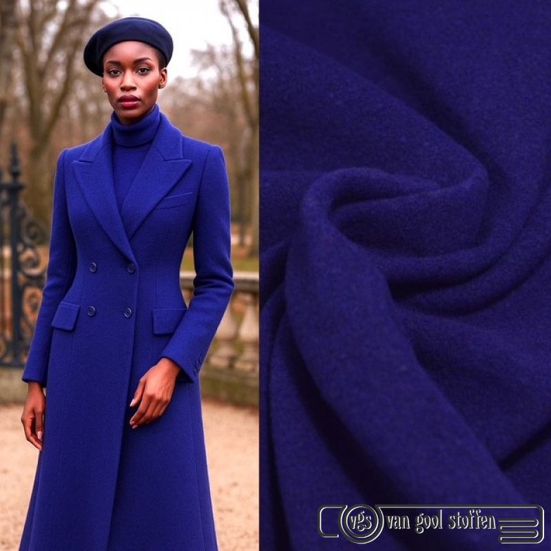Coupon 345x1.50 mantelstof wol kobalt blauw