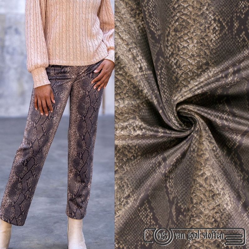 Coupon 95x160 Suede Stretch scuba met slangen print motief