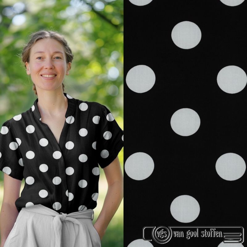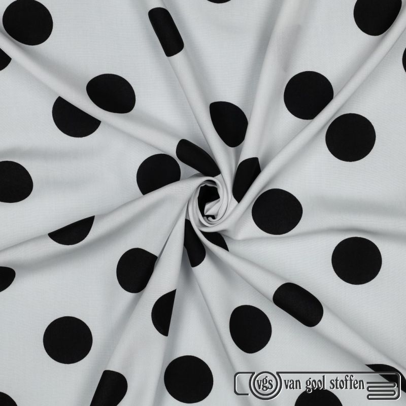 Viscose ecovero lenzing polka dots / noppen zwart wit groot