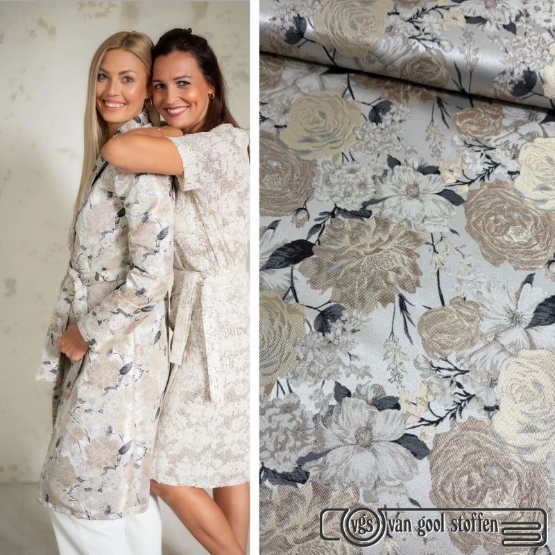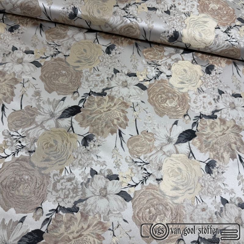 Jacquard bloem beige taupe