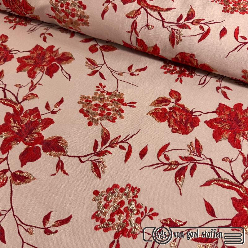 Exclusieve jacquard brocaat rood A La Ville / knipmode februari