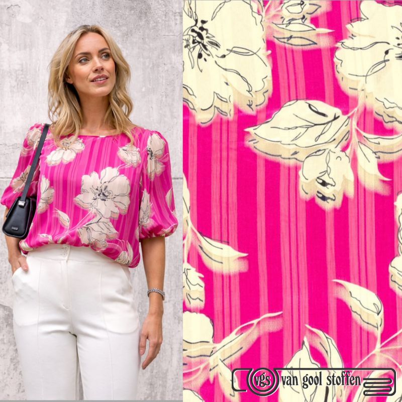 Chiffon stof met bloemen – Fuchsia # My image