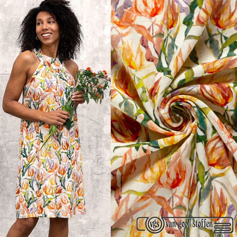 Linnen viscose tulpen print naturel My image
