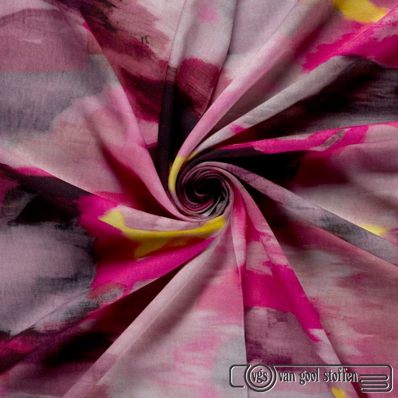 Linnen viscose abstract color waves cerise