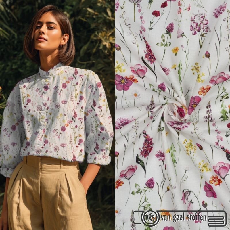Katoen voile digitaal bedrukt flowers