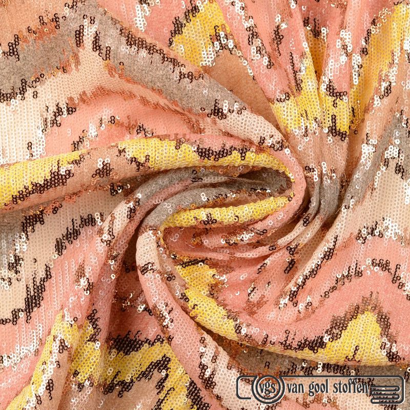 Pailletten zig zag stretch zwart zilver brons aqua