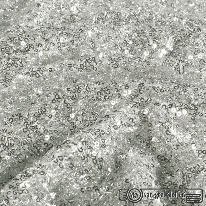 Mesh stof met pailletten en kraaltjes – zilver