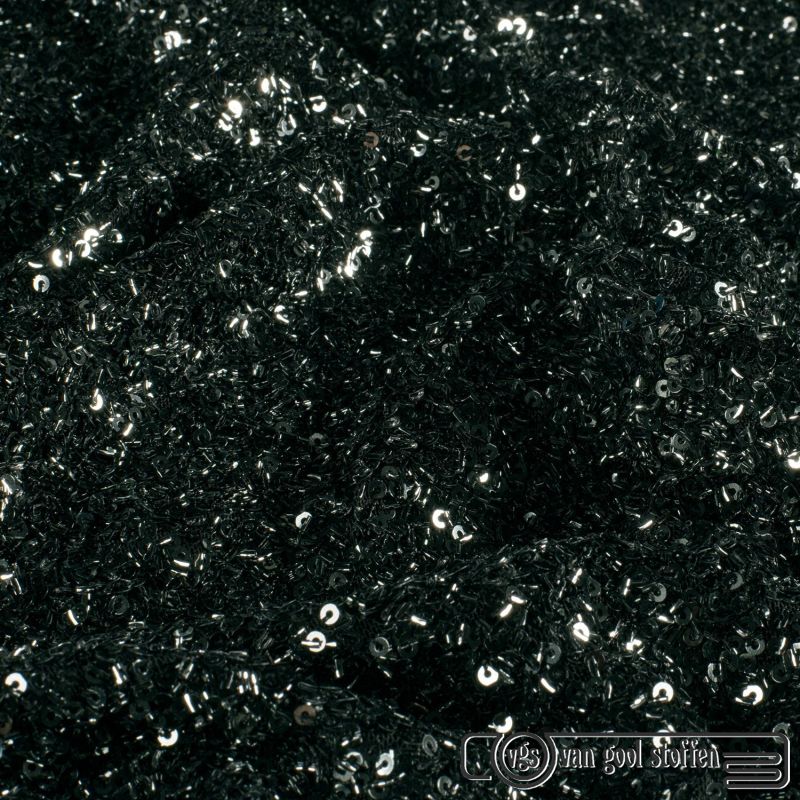 Mesh stof met pailletten en kraaltjes – donker grijs
