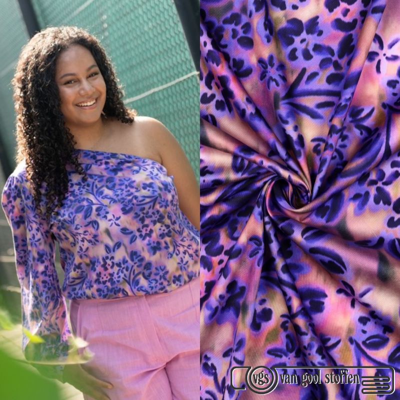 Viscose ecovero lenzing digital flowers petrol Poppy meets Pomme