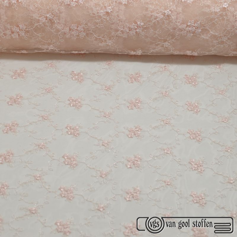 Luxe en exclusieve haute couture stof van tule in dubbeldoek plissé, verfijnd versierd met kralen en pailletten.