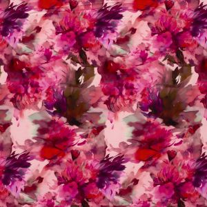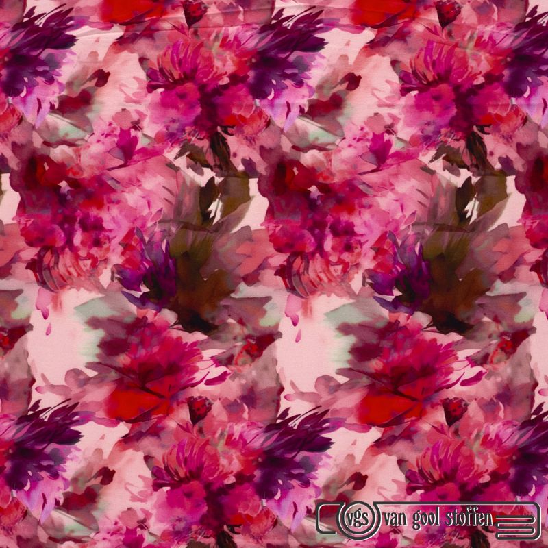 Tricot viscose bloemen print fuschsia cerise