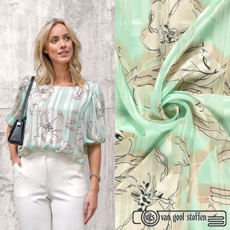 Coupon 050x150 Chiffon stof met bloemen – Mint # My image