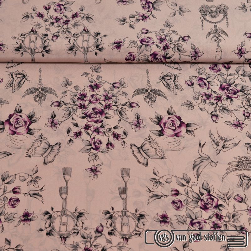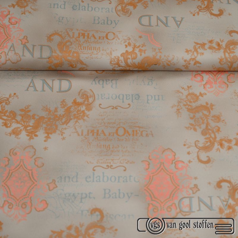Stretch katoen exclusieve designer stof beige zalm