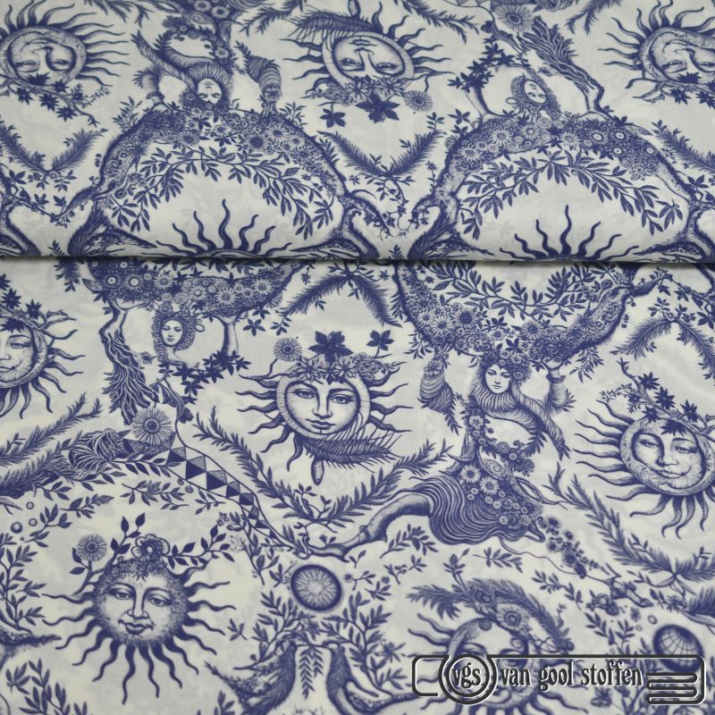 Exclusieve stretch katoen barok style blauw off white (deadstock)
