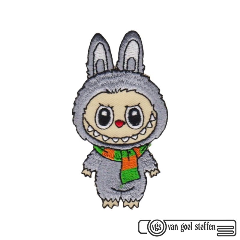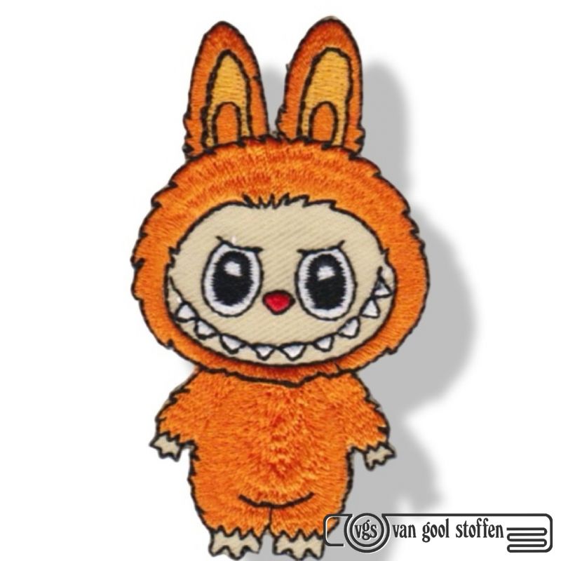 Embleem Labubu oranje / opstrijkbare applicatie kruikenstad