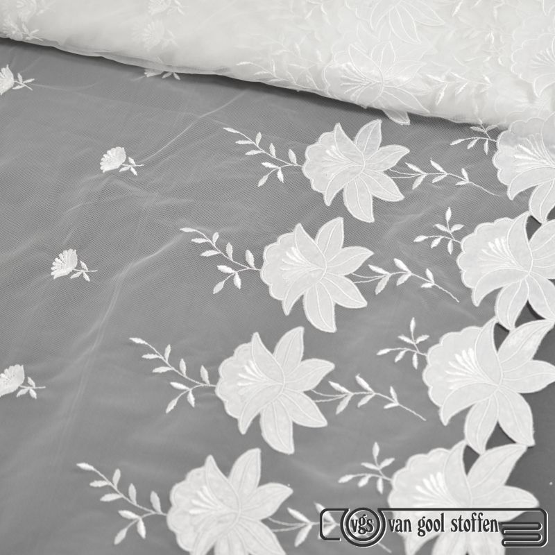 Tule met border rand geborduurd wit artikel 2480