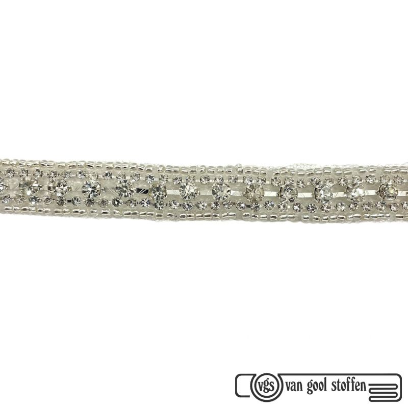 Crystal band zilver met steentjes en glaskralen 12 mm breed