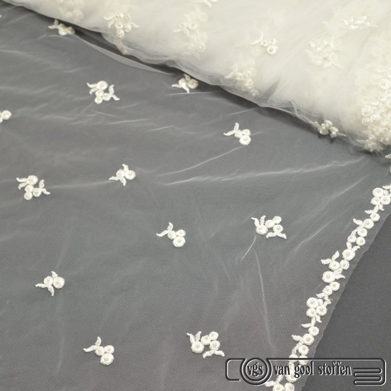 Bruidskant tule brode met bloementjes artikel2828-110 ivory uitlopend