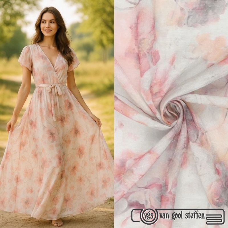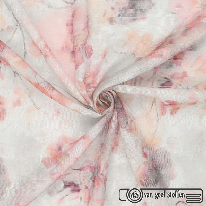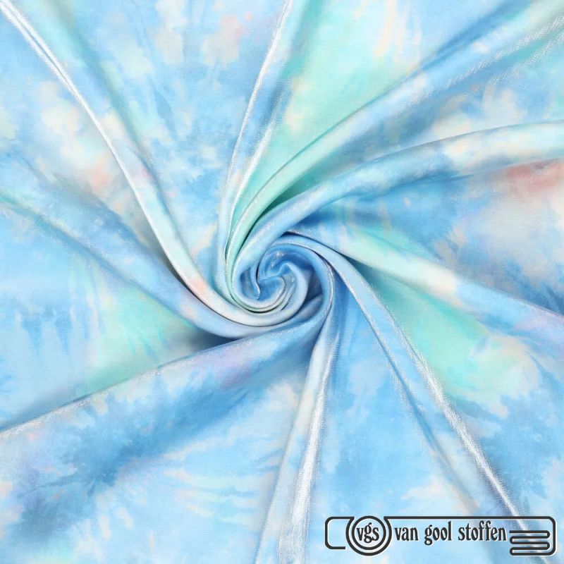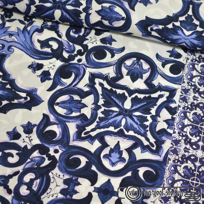 Exclusieve viscose crepe blauw white off barok print exclusieve designerstof (deadstock)