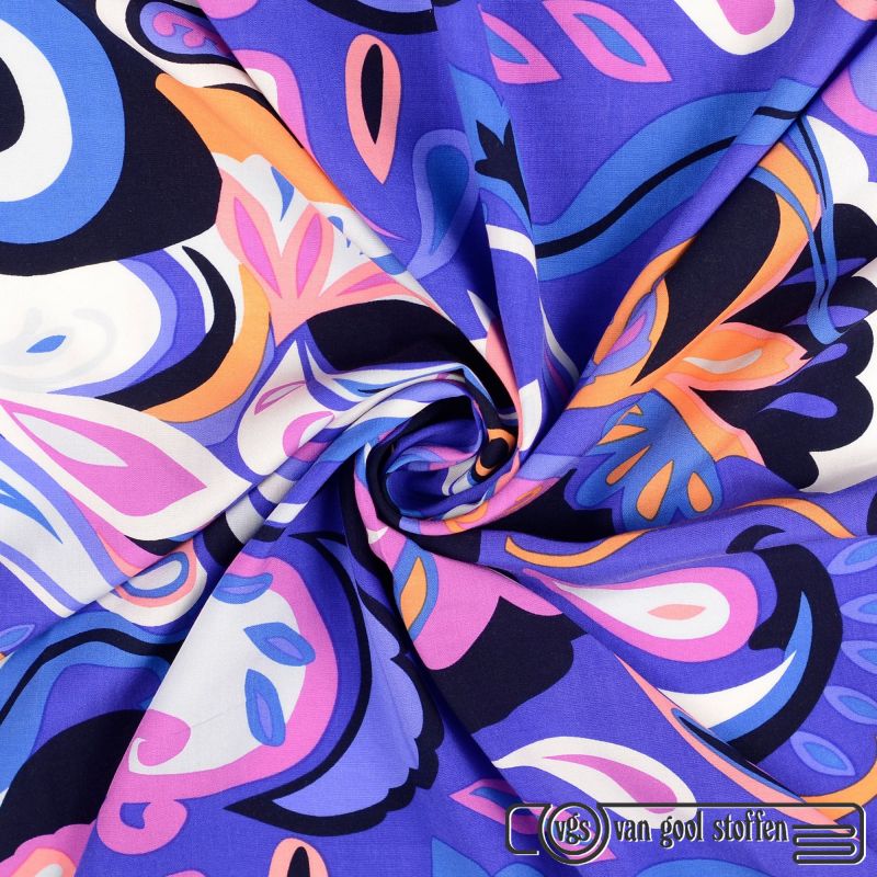 Satijn viscose ecovero met jacquard print kobalt blauw