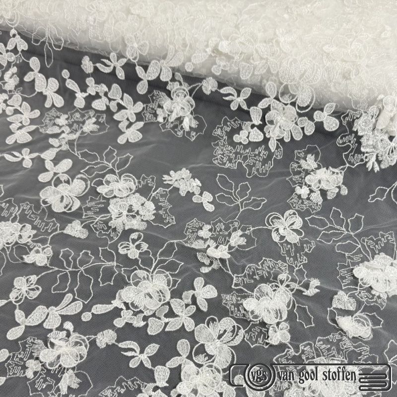 Exclusief Haute Couture 3D Kant – Ivory met Parels 50cm breed