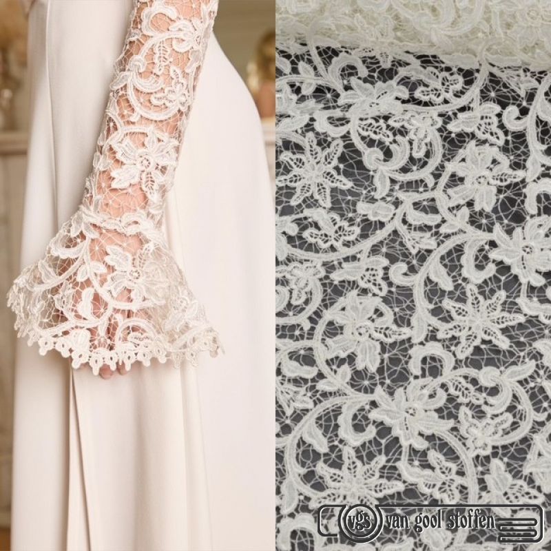 Dit delicate kant is perfect voor tops, bruidsjurken, communiejurkjes of als schitterend detail op mouwen, lijfjes en randen. Doordat de randen al afgewerkt zijn, bespaart u veel werk bij verwerking en krijgt uw creatie meteen die professionele, luxueuze finish.