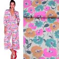 Paillettes traitées sur un tissu en maille extensible, ce qui donne au tissu une légère élasticité. Le tissu mesure 130 cm de large et 490 grammes m2.
