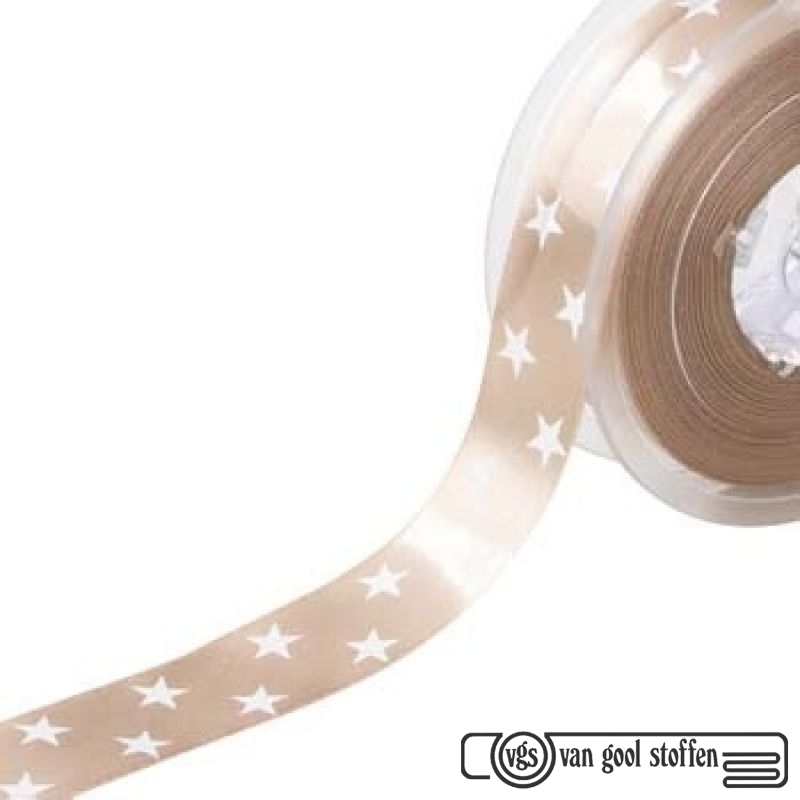 Satijnband 25 mm bedrukt Ster zand