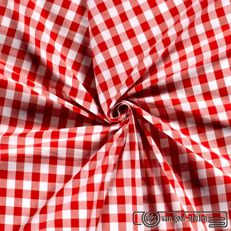 Katoen ruit rood wit / poplin garen geverfd rood wit/ brabantsbond 1.4cm